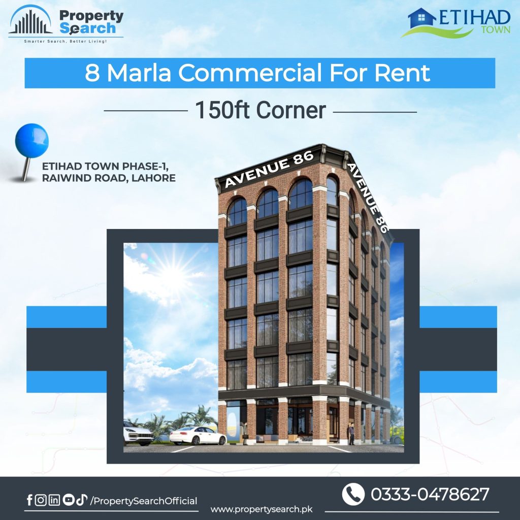 8 Marla Corner Commercial Building for Rent – Etihad Town Phase 1, Raiwind Road Lahore